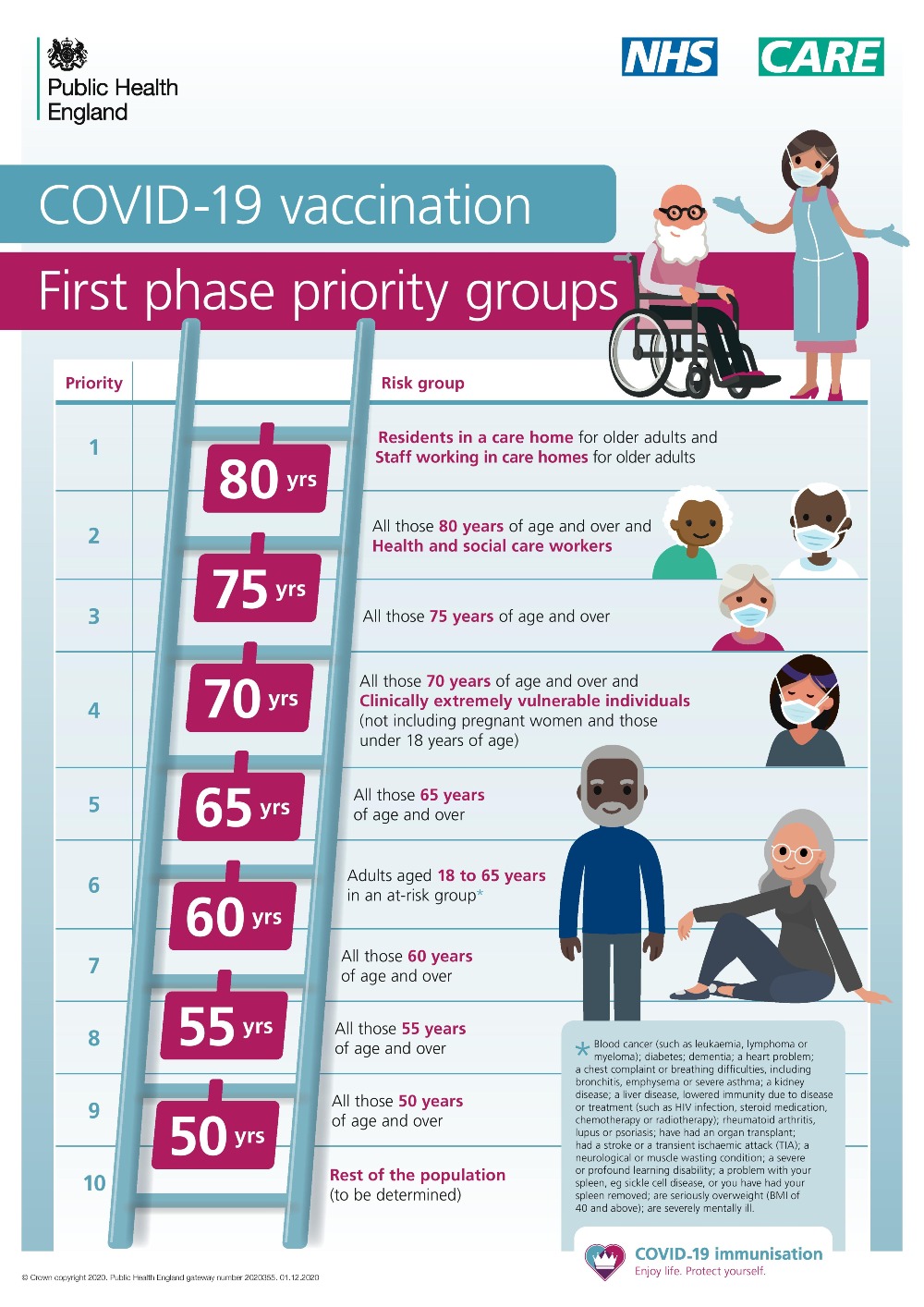 Read the latest JCVI advice on priority groups for the COVID-19 vaccination on GOV.UK