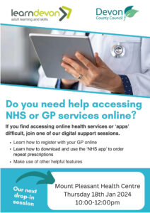 Learn Devon will be providing a digital support session to help our patients discover the ease of registering with your GP online. Come along to master the ‘NHS app’ and dive into a world of other invaluable features designed to enhance your healthcare journey.